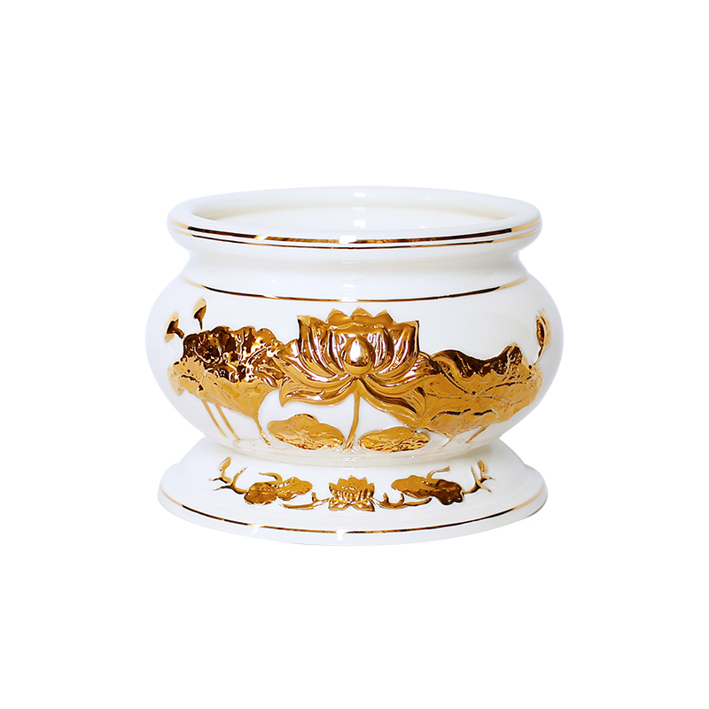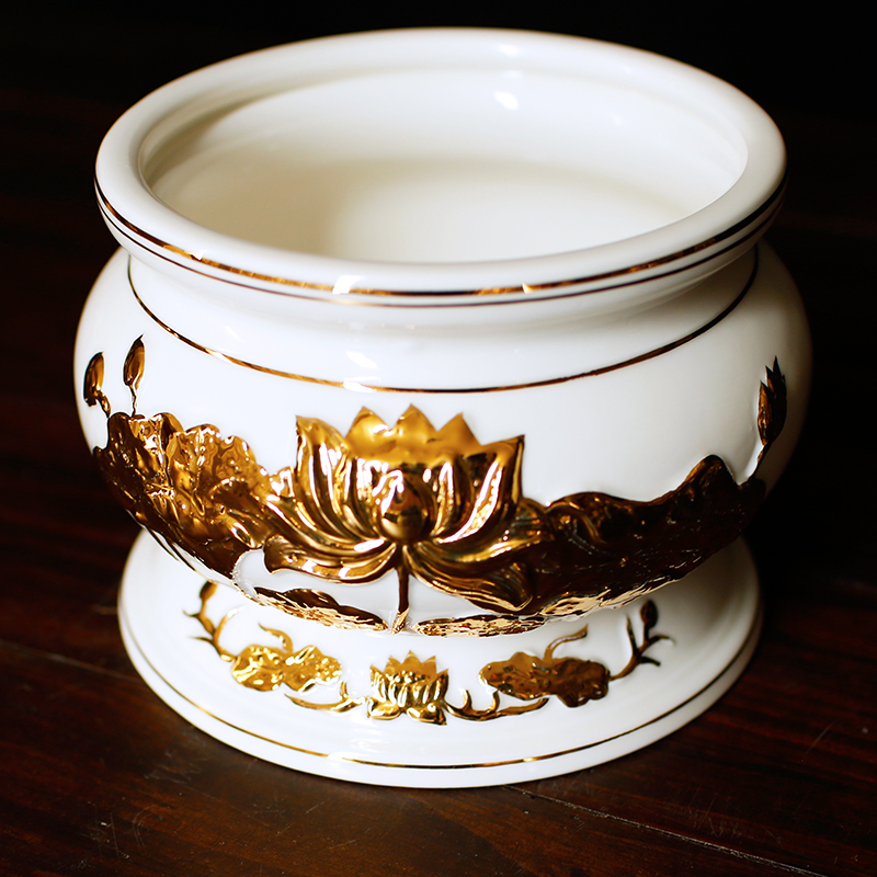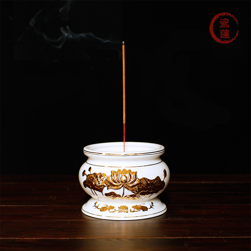 True Gold Lotus Incense Burner White Porcelain for Buddha Home Ceramics Indoor Buddha Tools Inserted with Incense Room Tribute to Guanyin Small Burning Incense