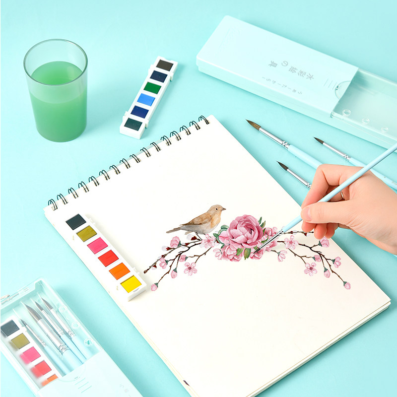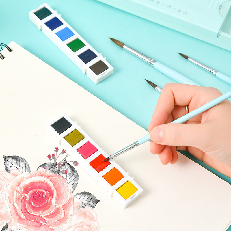 Jorgione 4 installed animal wool paint pen powder set special 12 color solid watercolor pigment set for beginners Fine art painting special adult pigment box portable