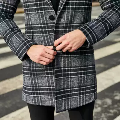 Autumn and winter new men's wool woolen coat double-sided trench coat men's Nixi suit collar English coat