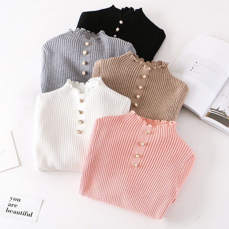 (Qingkura not to be changed) Girl hit bottom sweater half-height collar, autumn winter foreign air children's headsweaters jersey clothing line clothes