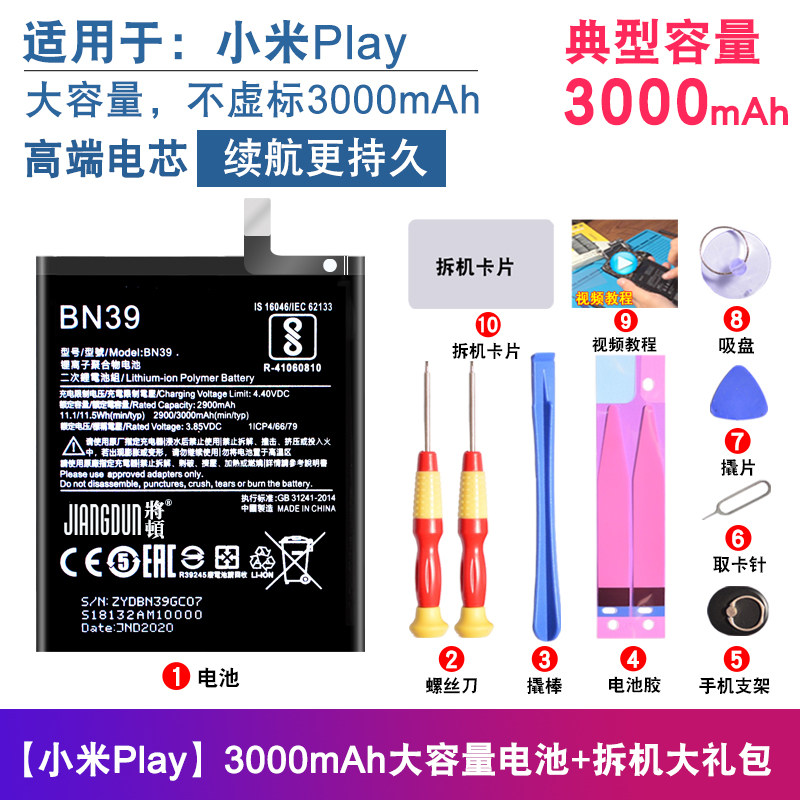 To apply the ton to Xiaomi Play battery large capacity bn39 M1901F9E Redmi paly replacement mobile phone built-in original magic change battery MI PLAY original plant expansion