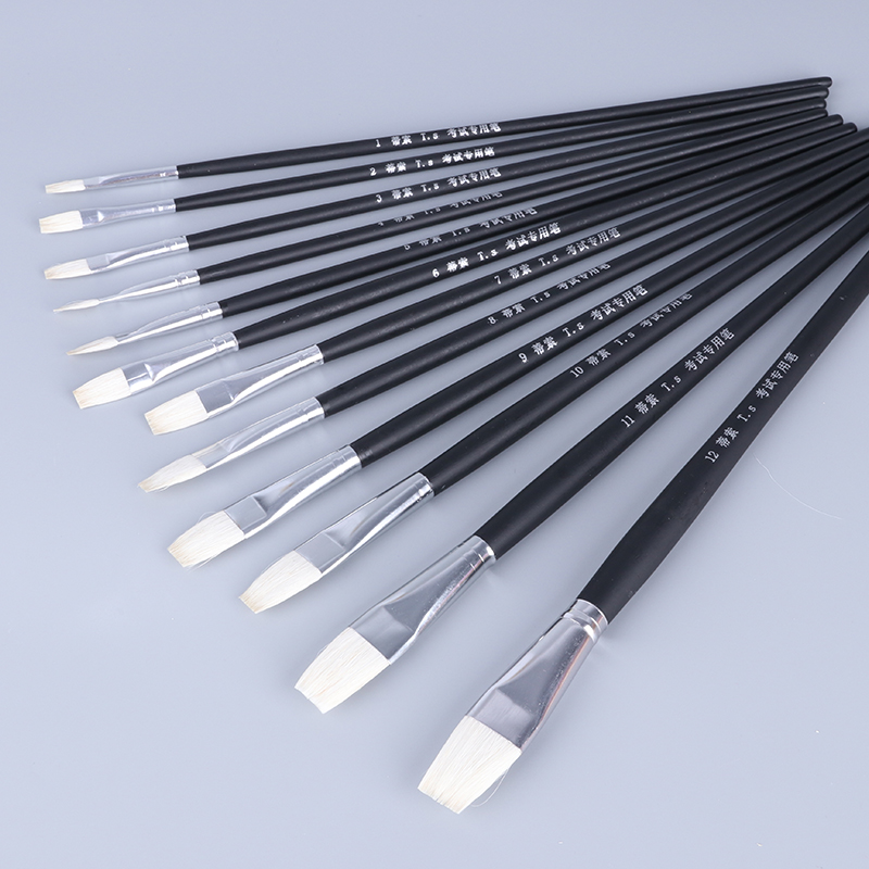 Goat Tail Flat Head Watercolor Pen Wool Paintbrush Soft Gross Water Absorption Good Black Pen Rod Set Big Medium Size Watercolor Pen