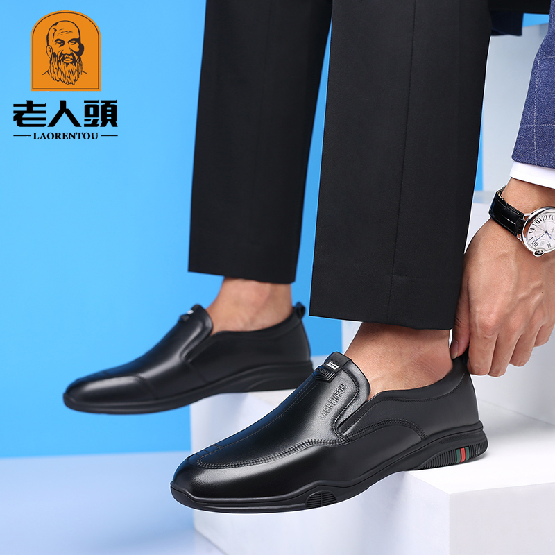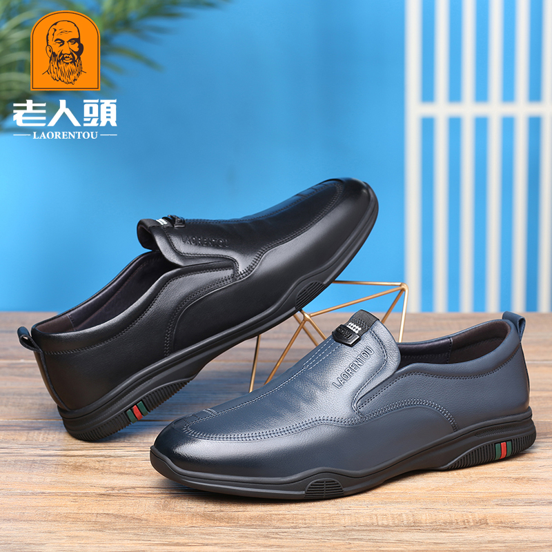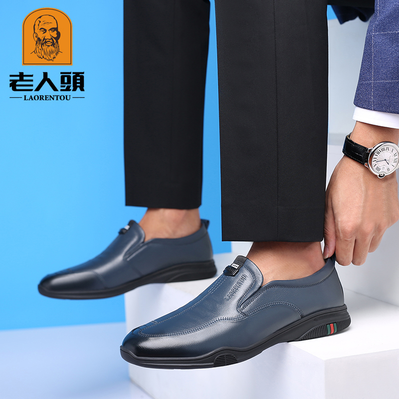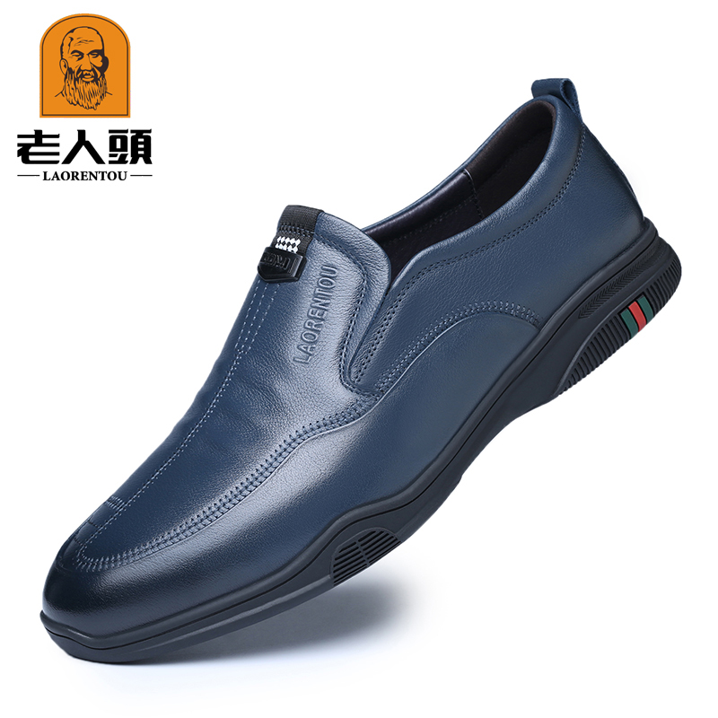 Old man's head men's shoes spring and autumn business casual leather shoes men's leather soft bottom Korean version trendy soft leather soft bottom blue shoes