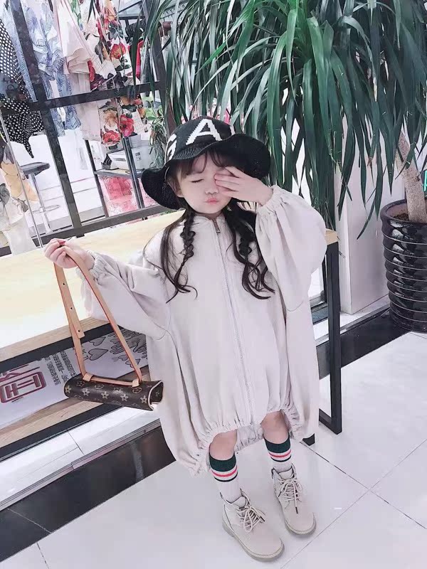Original custom children's girls boys autumn loose bubble sleeves asymmetrical long jacket zipper hooded sweatshirt