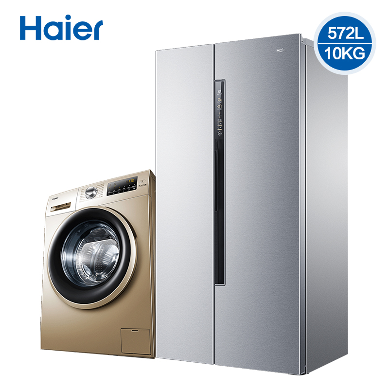 Haier refrigerator washing machine package 572 liters double door to door frost-free frequency conversion 10kg frequency conversion automatic drum