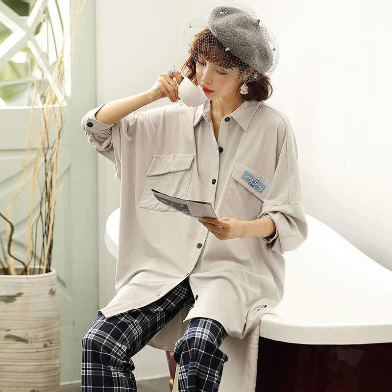 Autumn pajamas women's long-sleeved cotton long version loose sweet cute Korean version can be worn outside home clothes spring and autumn two-piece set