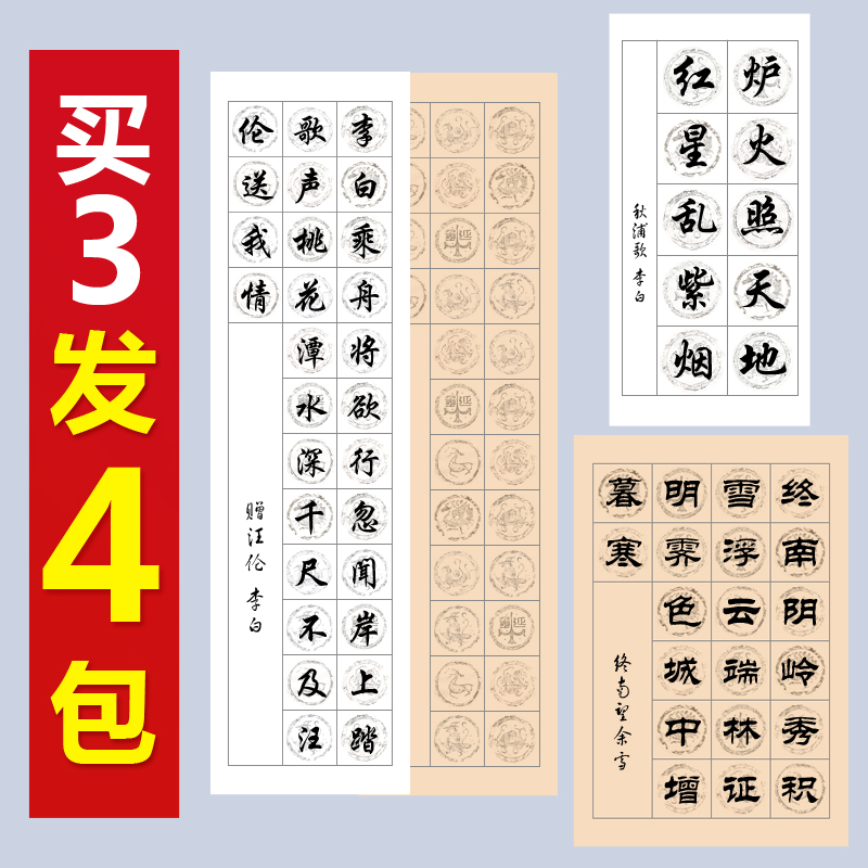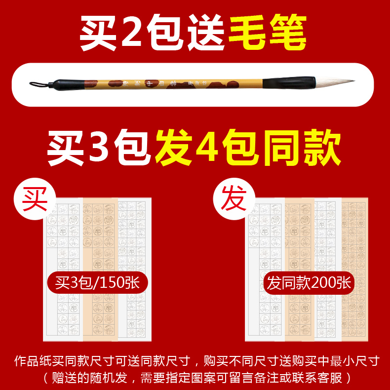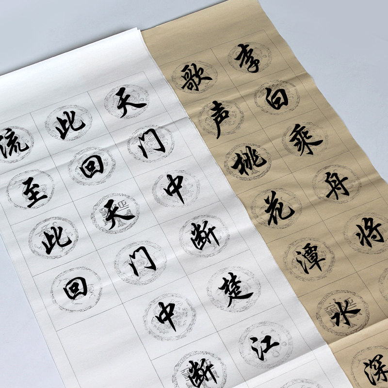Four feet three open folio soft pen Calligraphy works paper Brush competition special paper Seven words five words Ancient poetry writing Primary school students practice words with grid 20 28 40 56 grid checkered tile grid rice paper