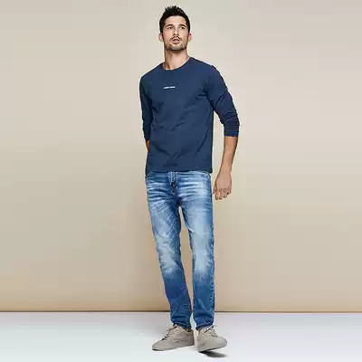 Kuegou men long sleeve T-shirt men autumn simple letter print base shirt round neck casual top 7761