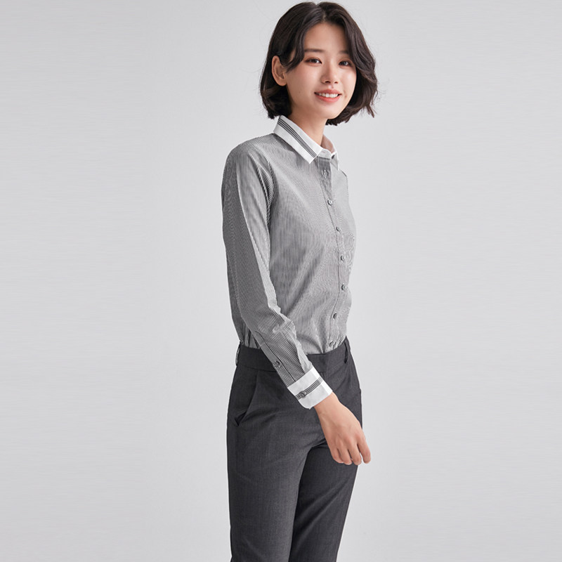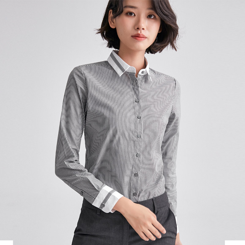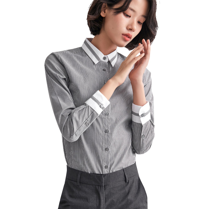Accommodation color striped shirt women's spring and autumn new long-sleeved work clothes top Korean version slim temperament dress shirt