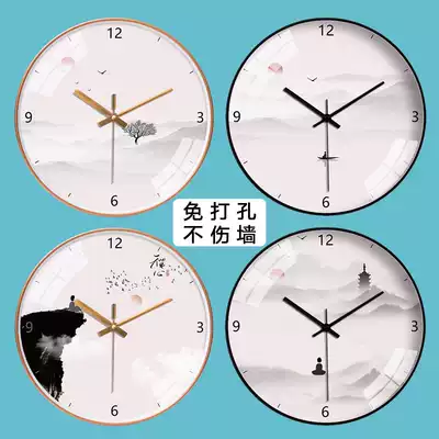 Wall clock Chinese Zen creative simple personality clock New Chinese landscape living room bedroom mute clock home