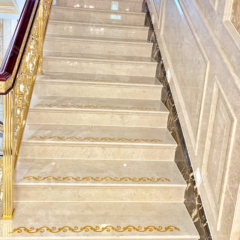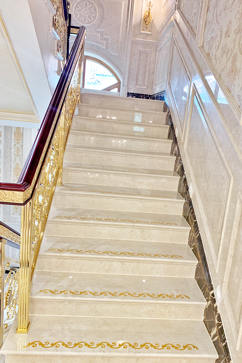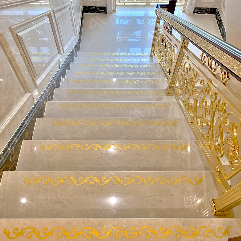 Customized spiral staircase marble tread arc shaped home interior villa loft duplex building natural stone steps