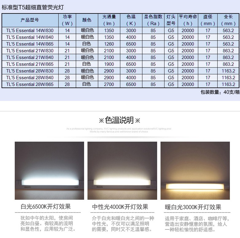 T5 14W white light 865 (6500K) with needle length (56 3CM) (2 pack) T5 14W neutral light 840(4000K)