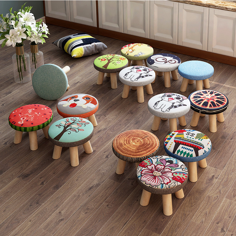Small Stool Home Solid Wood Round Short Stool Cute Children Sofa Stool Baby Seat Fashion Cartoon Creativity Small Bench