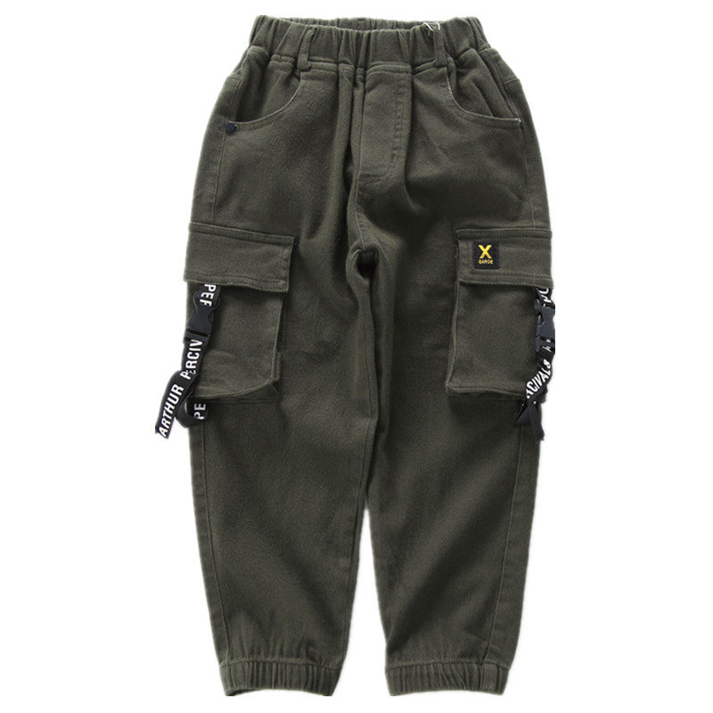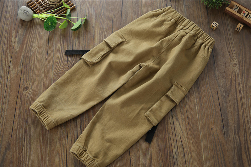Boys spring and autumn casual pants 2020 new children's cotton hanging belt multi-pocket overalls large children's pants pants