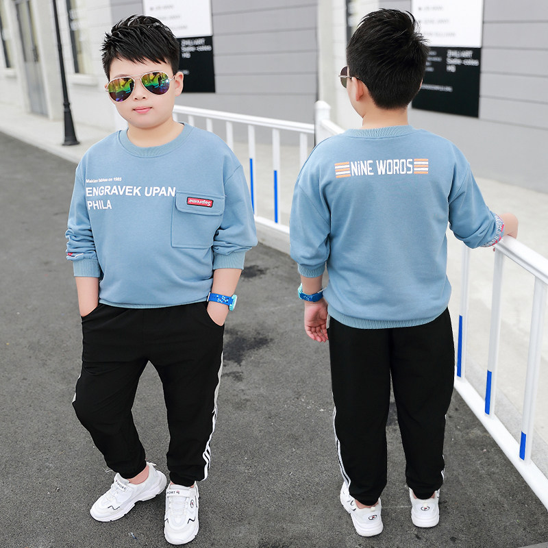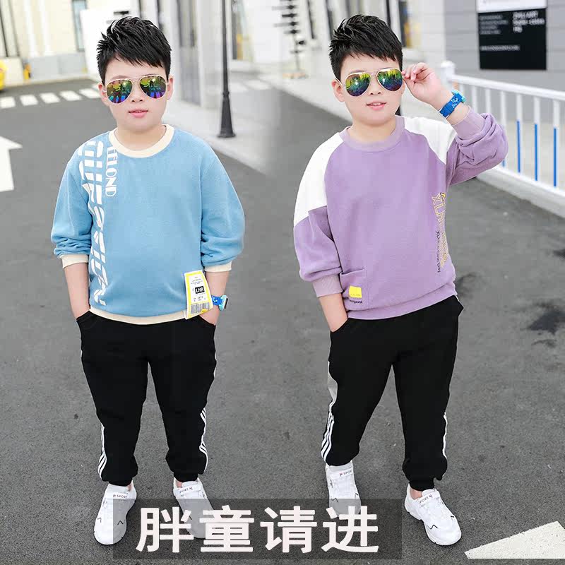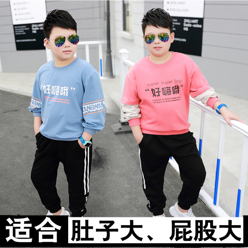 Fat boy spring and autumn suit plus fertilizer to increase 2019 new 7-15 years old children's sports and leisure loose two-piece suit