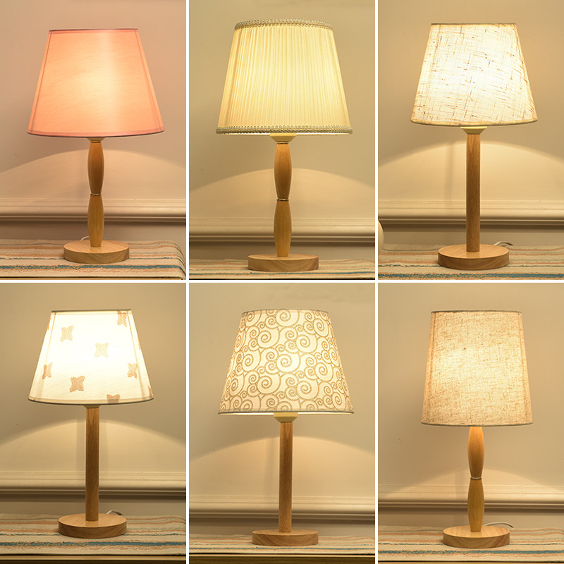 American small table light bedroom solid wood Nordic minimalist modern home room remote control romantic cozy laced headlights