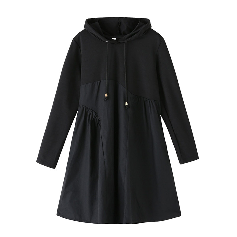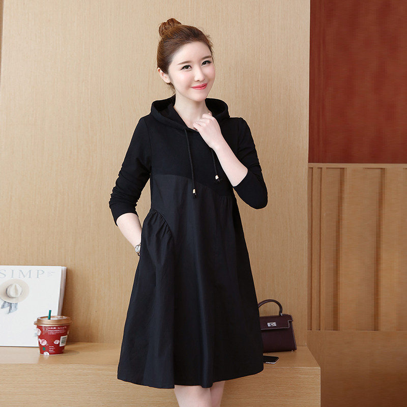 Fat plus size women's fat mm2021 spring and autumn new loose belly hooded long-sleeved thick cotton T-dress