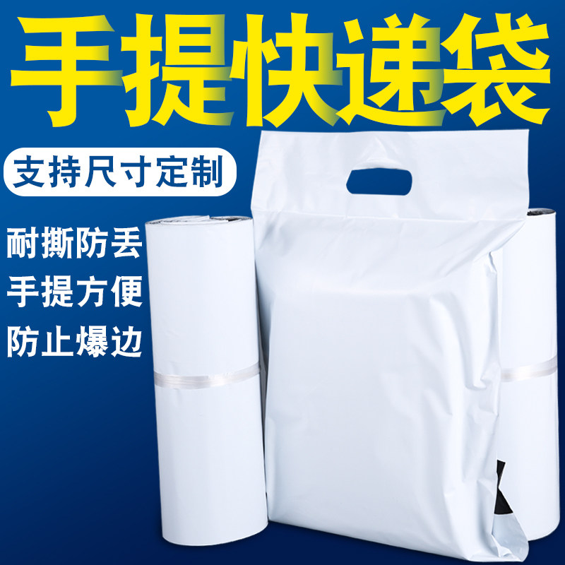 Handheld express bag white thickening clothing logistics packaging bag customized handbag with easy tear back rubber packaging bag