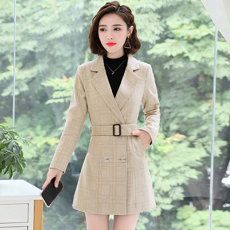 Plaid woolen sweater women's spring and autumn new large clothes tide qi and gas in long version of suit collar Daughter Clothing Jacket