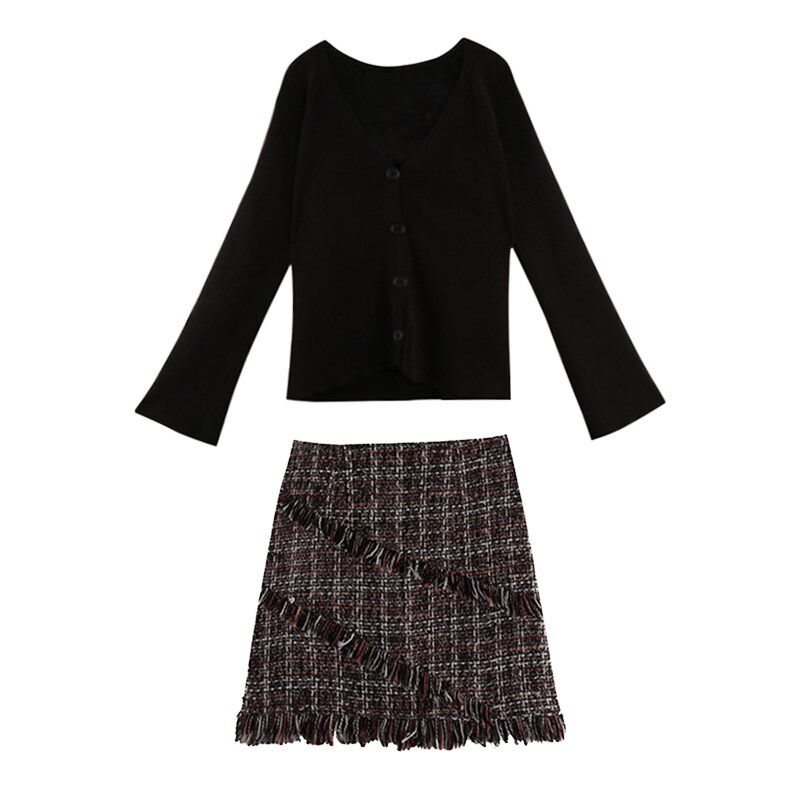 sandro moscoloni2019 autumn winter new small fragrance suit skirt with bottom stitch sweater sweater two-piece set