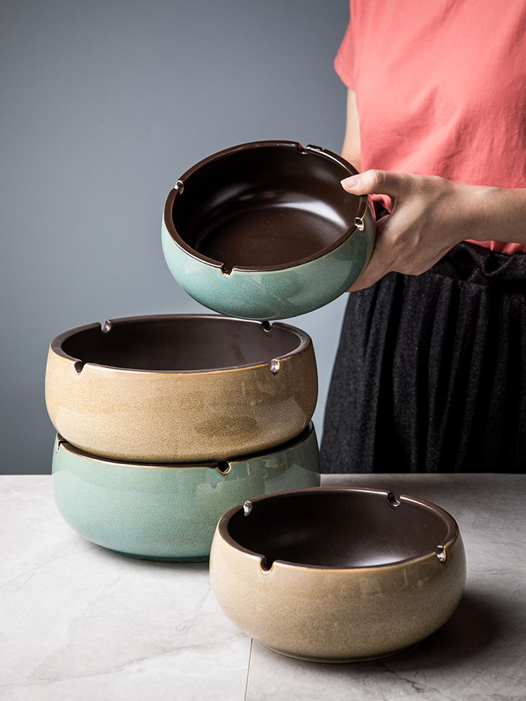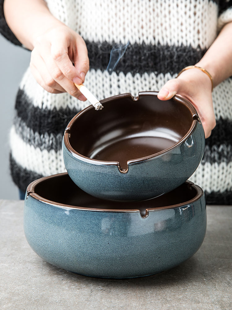Creative large ashtray anti-fly ash European retro coffee table Ceramic ashtray Household living room office garbage tank