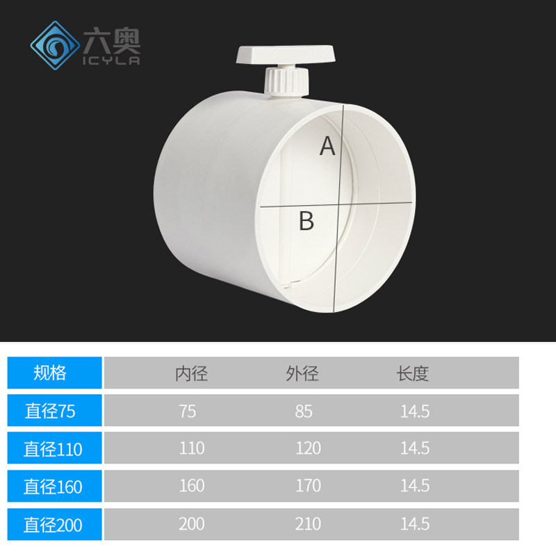 PVC air volume regulating valve wind butterfly valve door manual pipe new wind valve round switch 75110160200m m