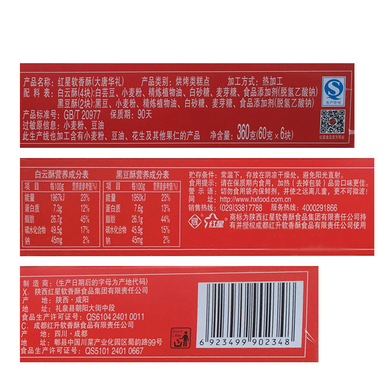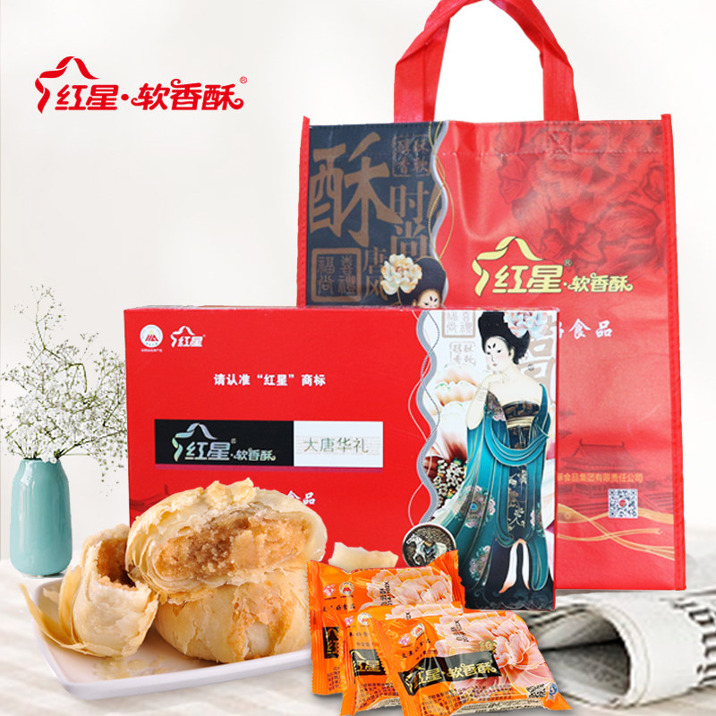 Red Star Soft Fragrance Crisp Big Tang Hualai 360g Crisp Leather Pastry Gift Box White Cloud Ghee Black Bean Ghee Moon Cake Accompanied By Gift Giving Gift