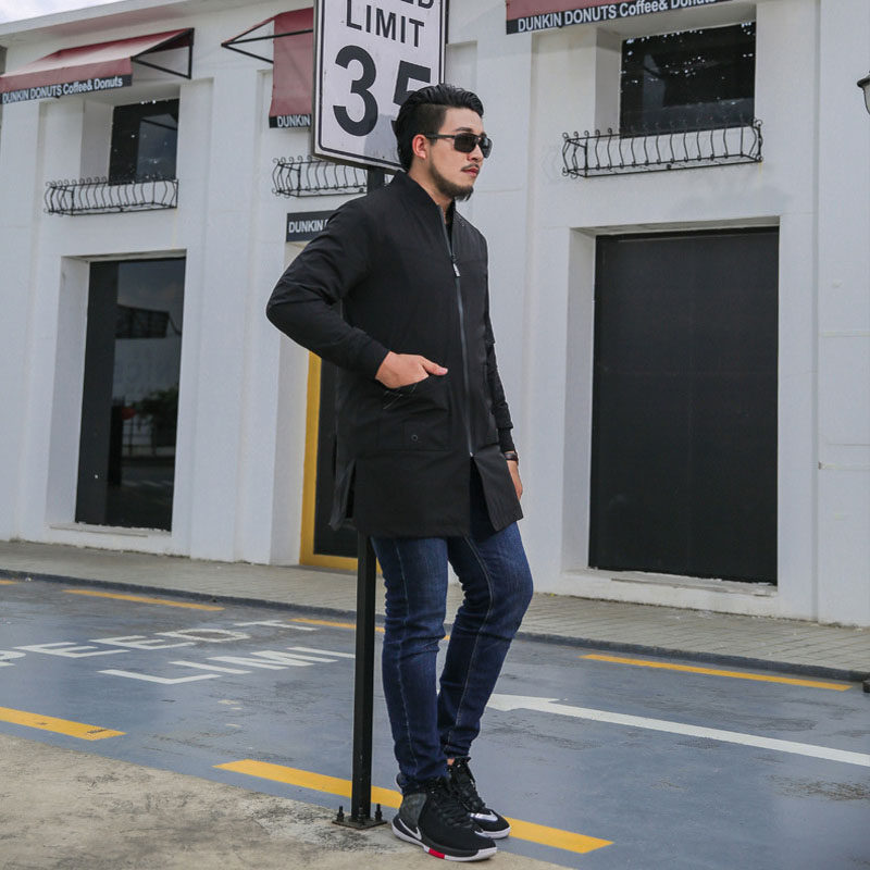 Trench coat men's big size tide fat loose baseball collar plus fat men's autumn trench coat long version fat guy 45 years old