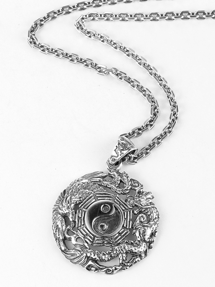 ruibeila925 silver comeback ancient Longfeng Fengxiang gossip pendant men's Chinese wind hollowed-out to make old necklace boomers