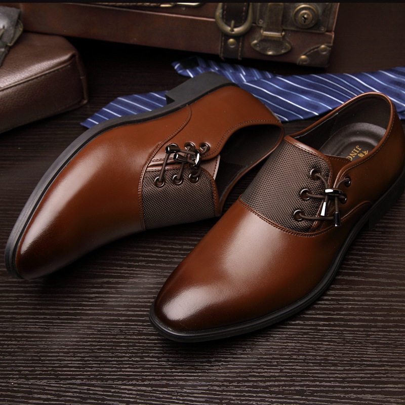Men's leather shoes British retro style pointed toe men's trend polished bright leather business wedding shoes men's heightened single-layer leather shoes