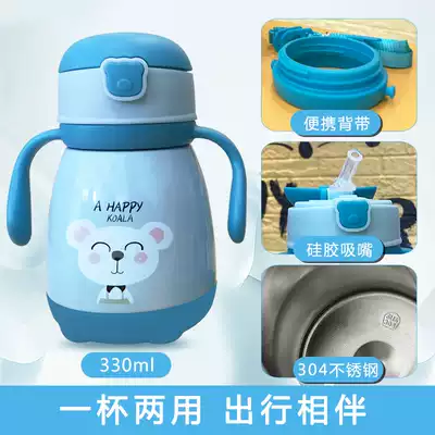 Baby water Cup kindergarten out portable children's thermos cup with straw cute handle anti-drop baby drinking cup