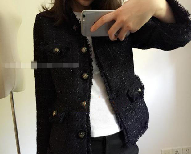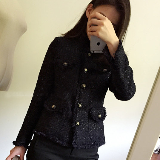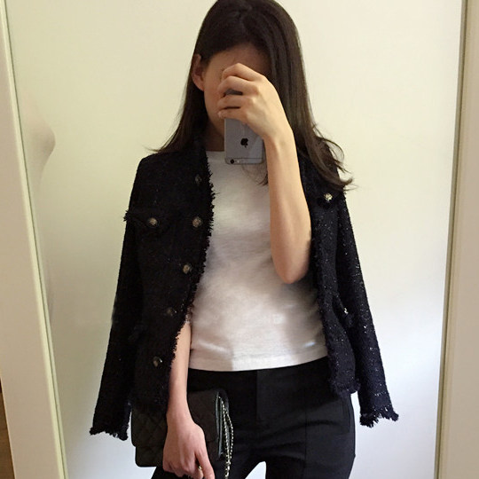 Gu Qiqi GUQIQI Spring and Autumn Small Fragrant Wind Tweed Short Section All-match Temperament Slim Stand-up Collar Jacket