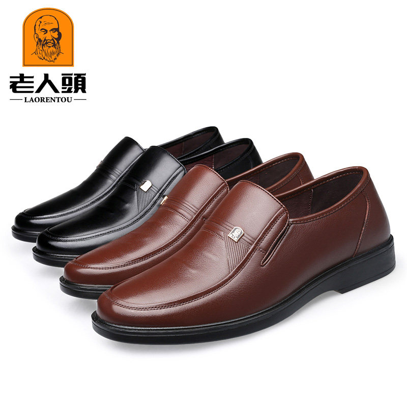 Old man's head fall leather shoes Men's leather casual men's shoes One foot pedal men's driving shoes Comfortable Dad Low Bunch Shoes