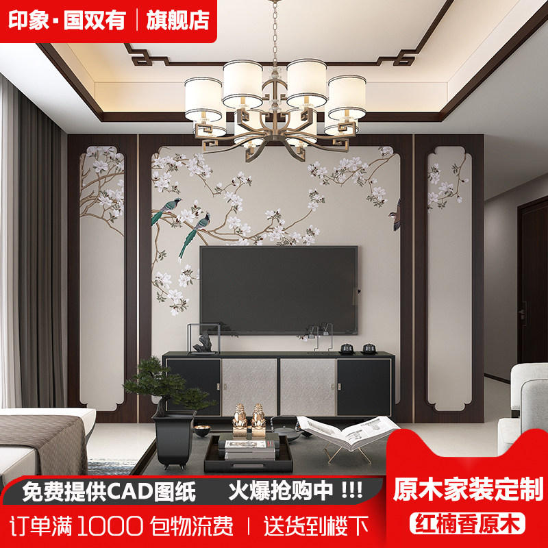 Wood line Solid wood flat line TV background wall border decoration new Chinese ceiling log living room modeling line