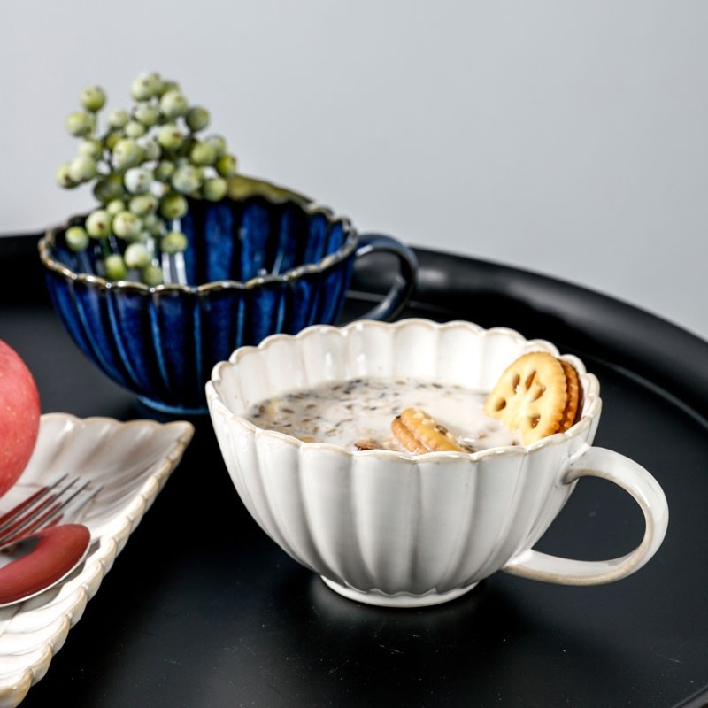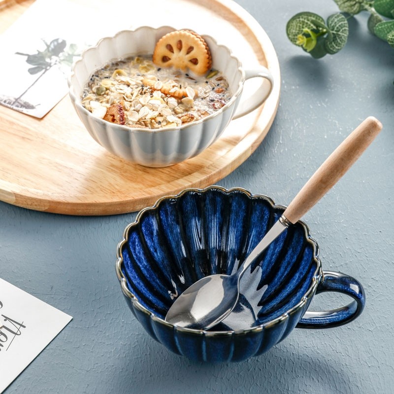 Peacock blue two-piece wooden handle fork spoon peacock blue bread plate peacock blue oatmeal Cup wooden handle fork spoon peacock blue with plate couple Cup peacock blue oat Cup white two-piece wooden handle fork