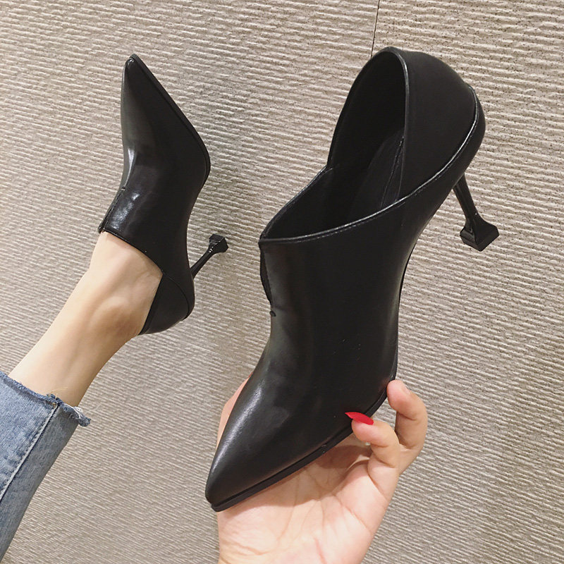 Hipster high heel women's shoes 2021 new spring and autumn models 2022 spring thin heel pointed deep mouth professional single shoes