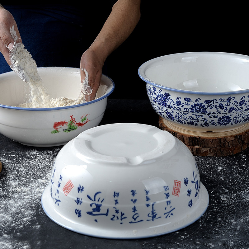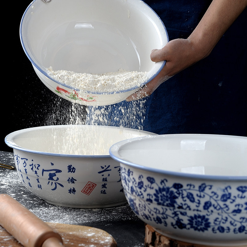 Ceramic Green Flowers and dough pots Home Old-fashioned Wa Basin Thickened Kitchen Big knead surface Porcelain Tan ceramic Jam Basin Large Porcelain Basin