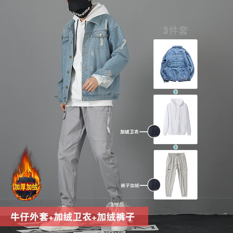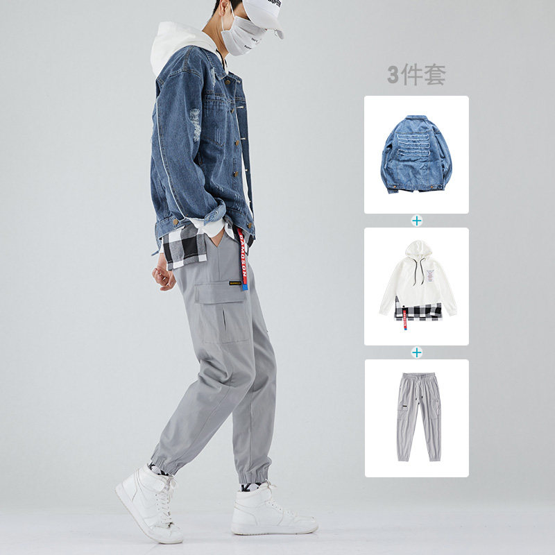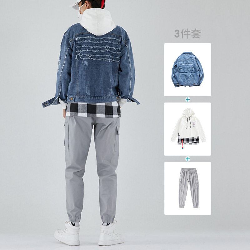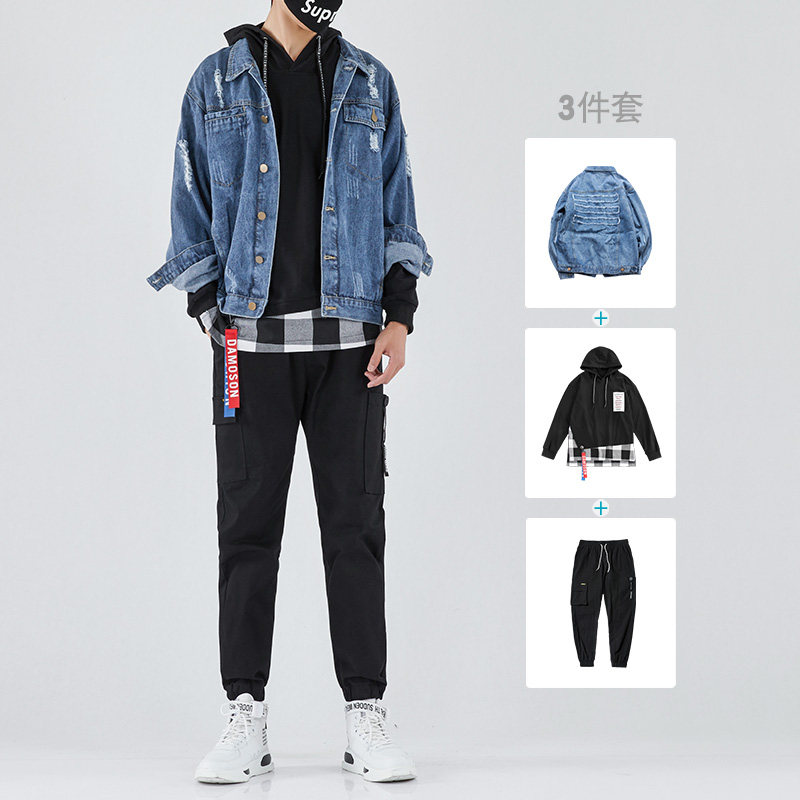 Denim Jacket Male Korean version Trend frock jacket jacket Men's outfit Set of clothes Spring and autumn season suit mix with handsome