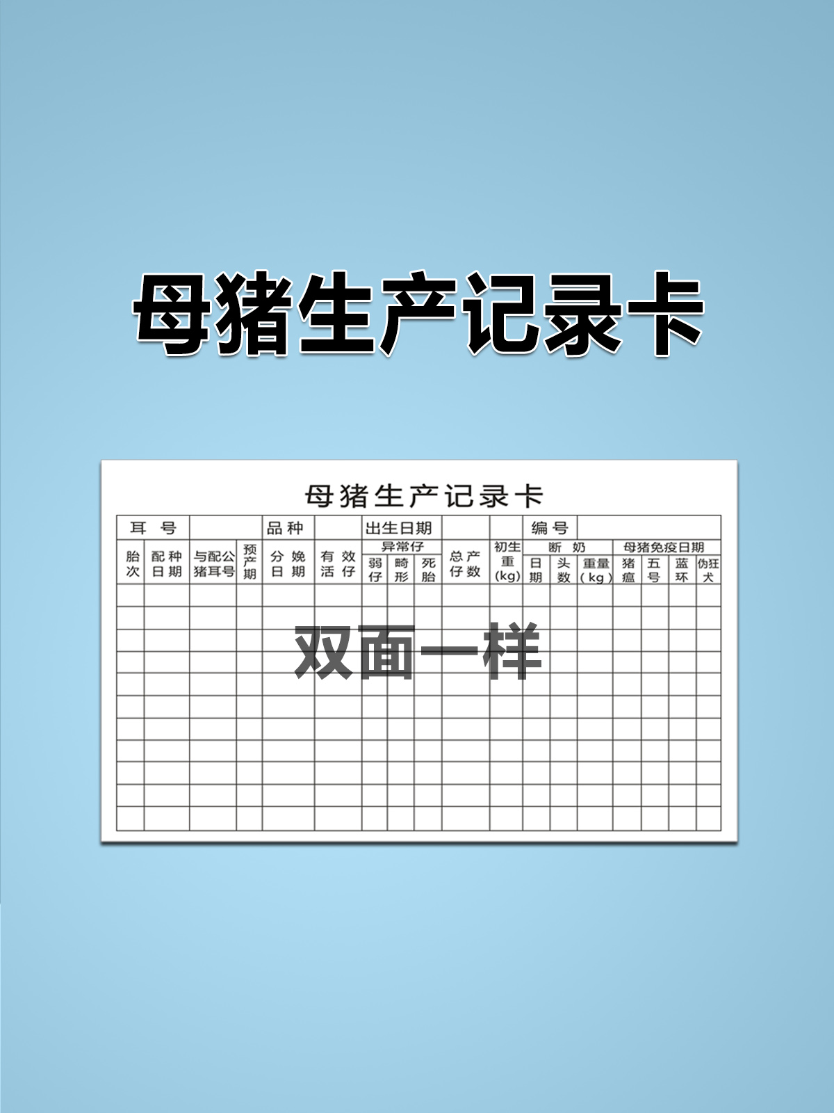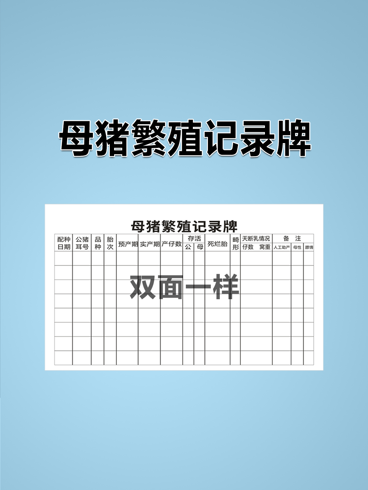 Mother Pig Game-tracking Card Prolific Record File Reproduction Record Card Pig Record Card Mother Pig Record Card Table