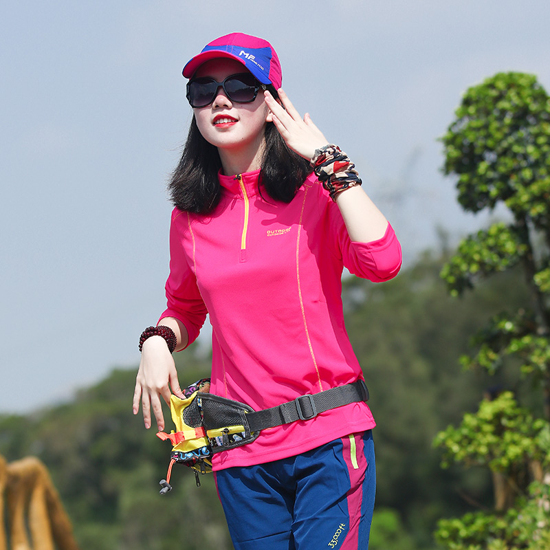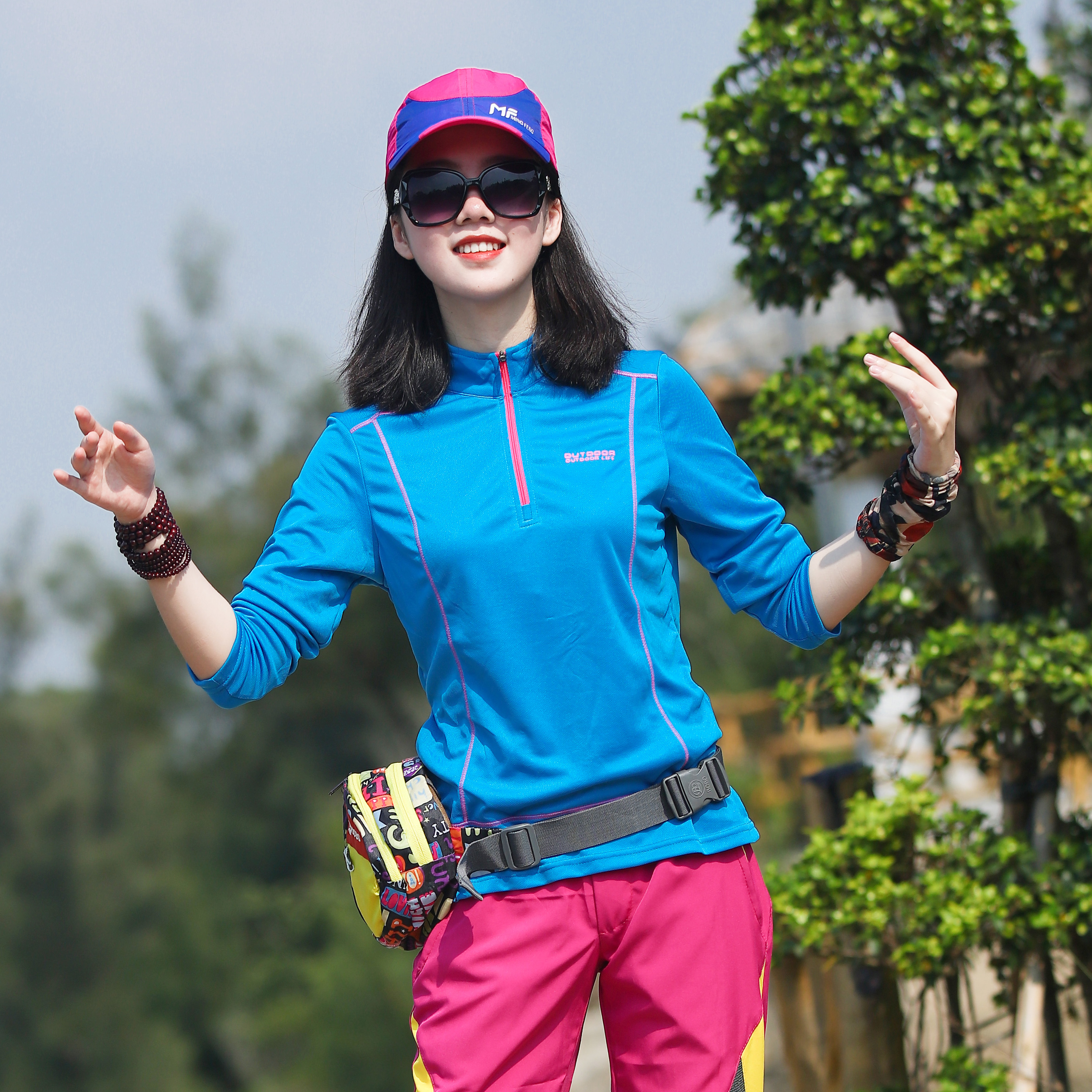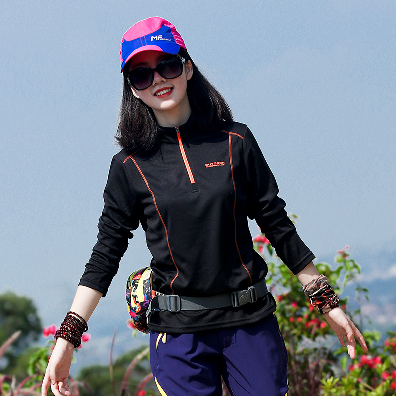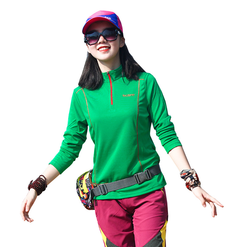 Outdoor elastic quick-drying clothing women's long-sleeved T-shirt quick-drying clothing solid color sunscreen sweat-absorbing breathable mountaineering hiking sports T-shirt