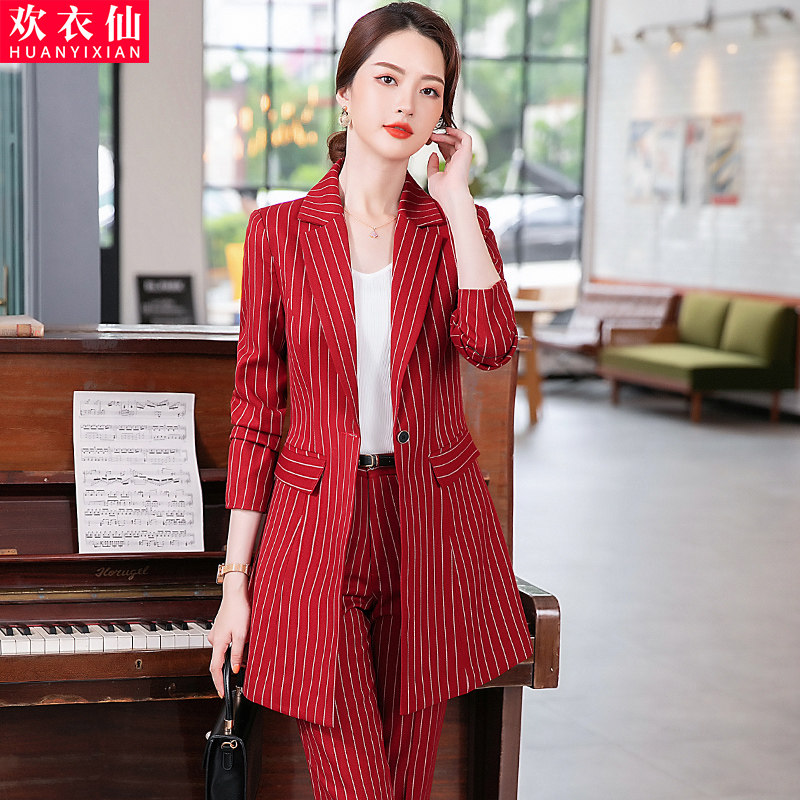 Suit suit female Korean version of work clothes goddess of quality Fan Yinglun wind formal dress tooling tide fashion striped overalls