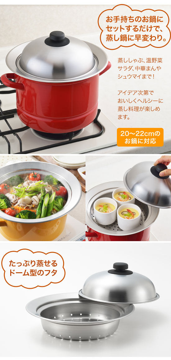 Made in Japan Yoshikawa stainless steel steamer steamer steamer steamer steamer frame high cover 18 20 22 24 26cm