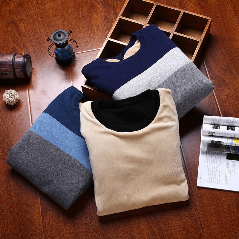 Men's sweater gush thickened with undershirt autumn and winter warm clothes blouse blouse blouse sweatshirt sweatshirt sweatshirt sweatshirt