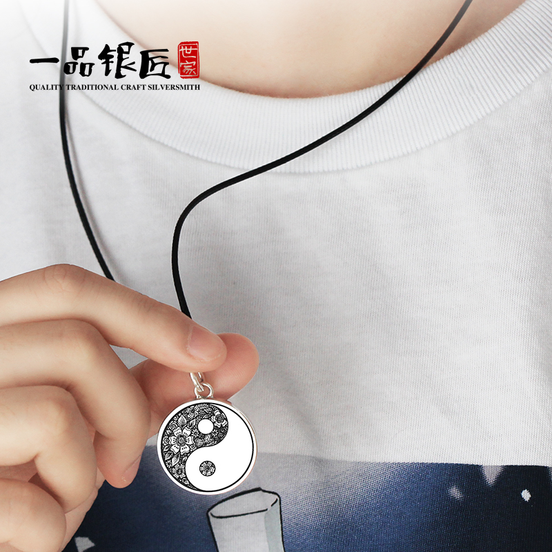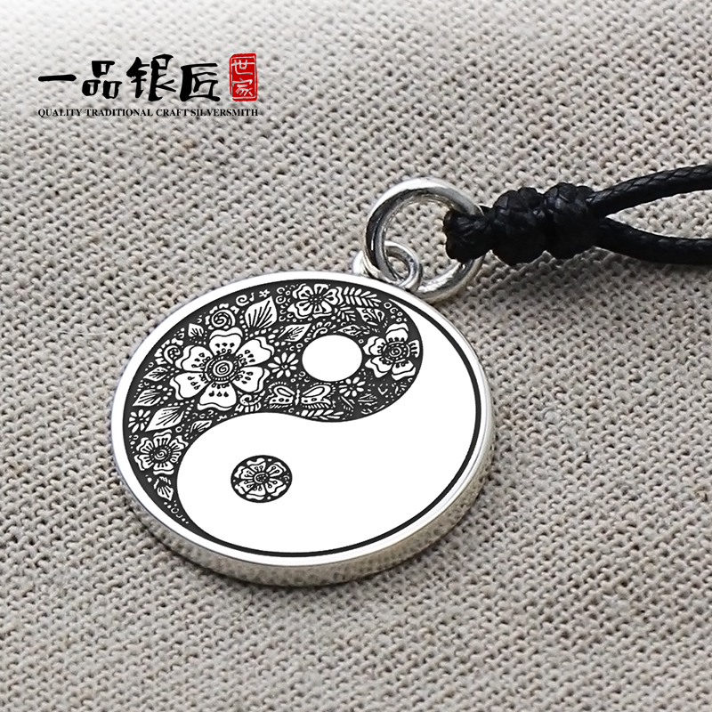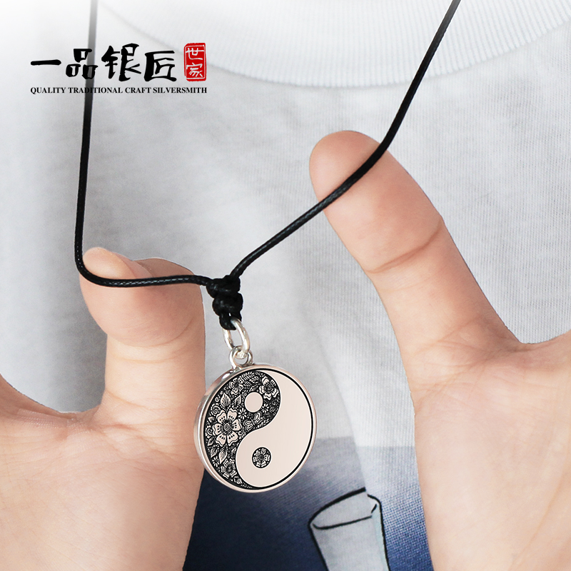 Vintage round card Yin and Yang five elements amulet single pendant female without chain single buy 999 sterling silver jewelry tide shake sound