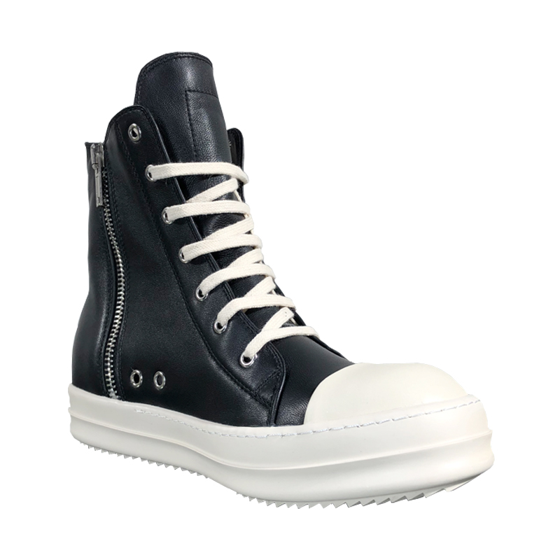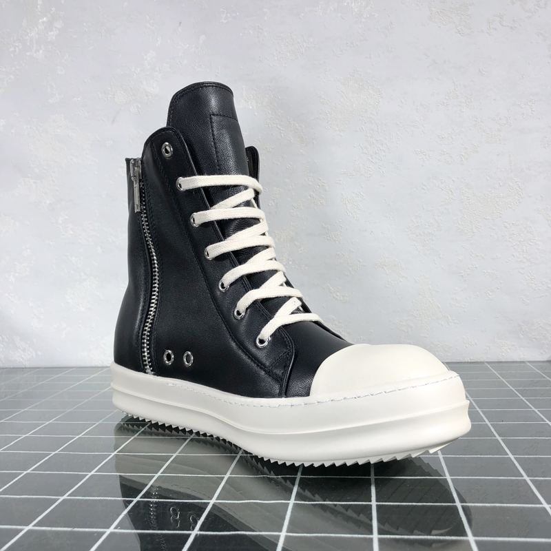 Round Owens high-top men's shoes leather mixed breed sheep dark casual zipper milk fragrant thick bottom shoes short boots tide