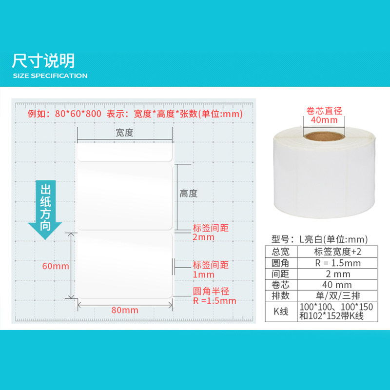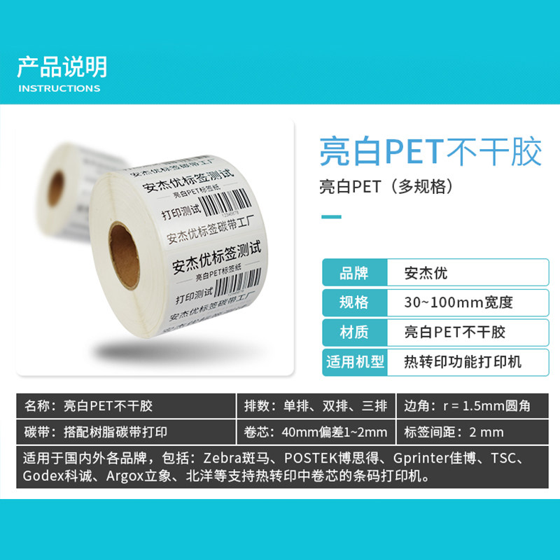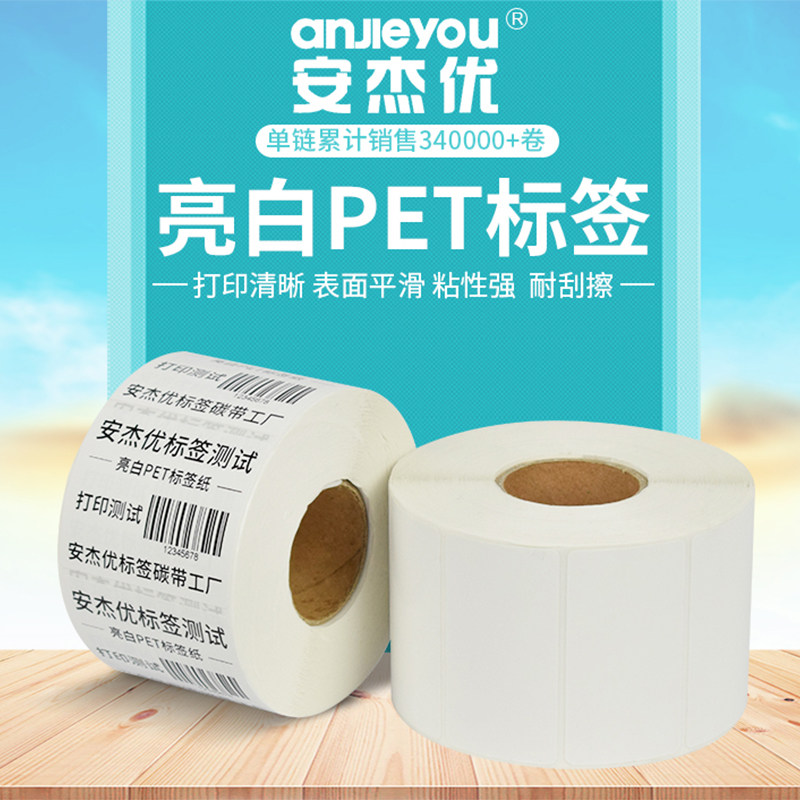 Bright white PET barcode label paper 100*80 70 60 50 40*30 Barcode self-adhesive waterproof anti-greaseproof paper