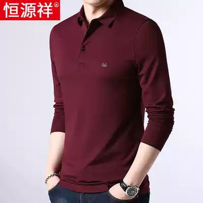 Hengyuanxiang mulberry silk men's long-sleeved T-shirt lapel daddy autumn middle-aged men loose Polo shirt T-shirt top