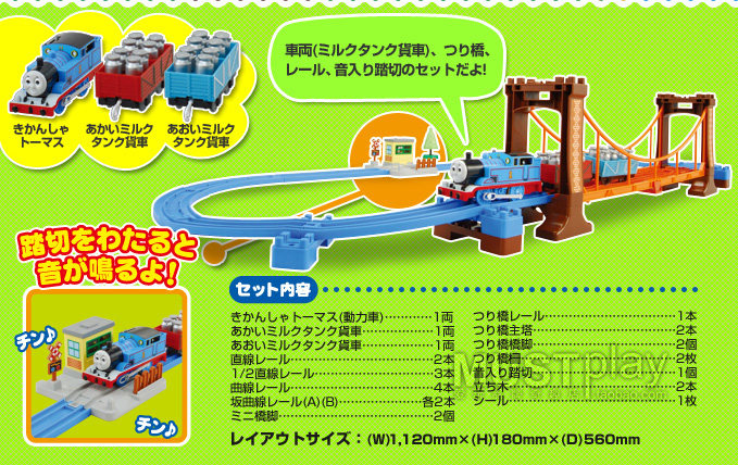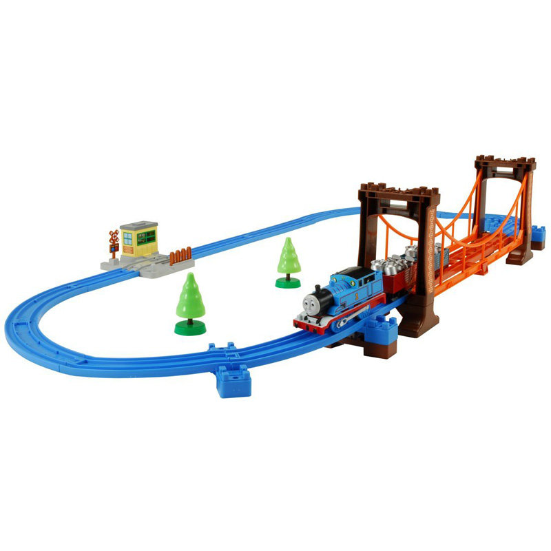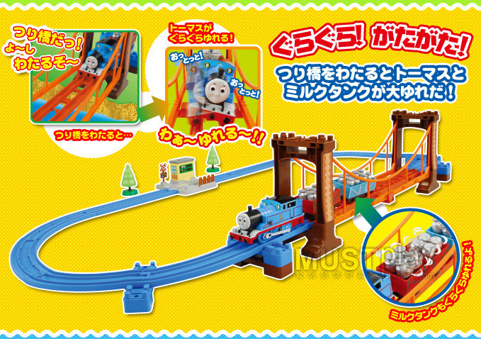 Japan Tommy Tommas swing big suspension bridge electric small locomotive car track scene toy set