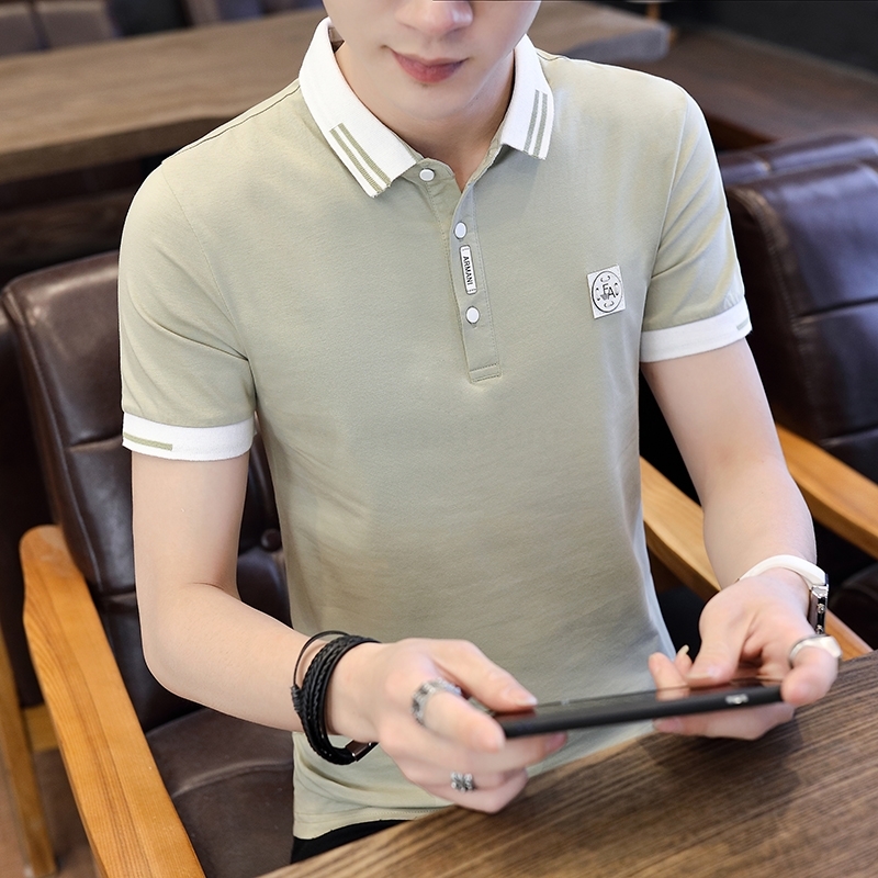 Port Wind POLO shirt man 2019 new trends flip collar high-end pure cotton handsome fit personality men short sleeve T-shirt