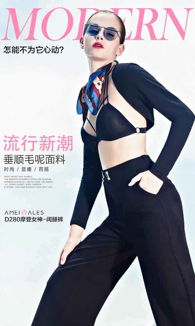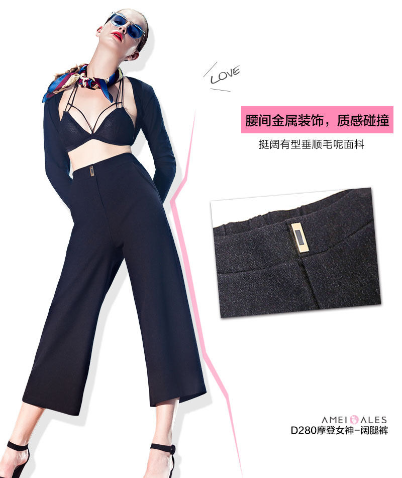 Clearance Amera modern goddess wide-leg pants woolen plus fat mid-waist loose spring and autumn leisure all-match D280